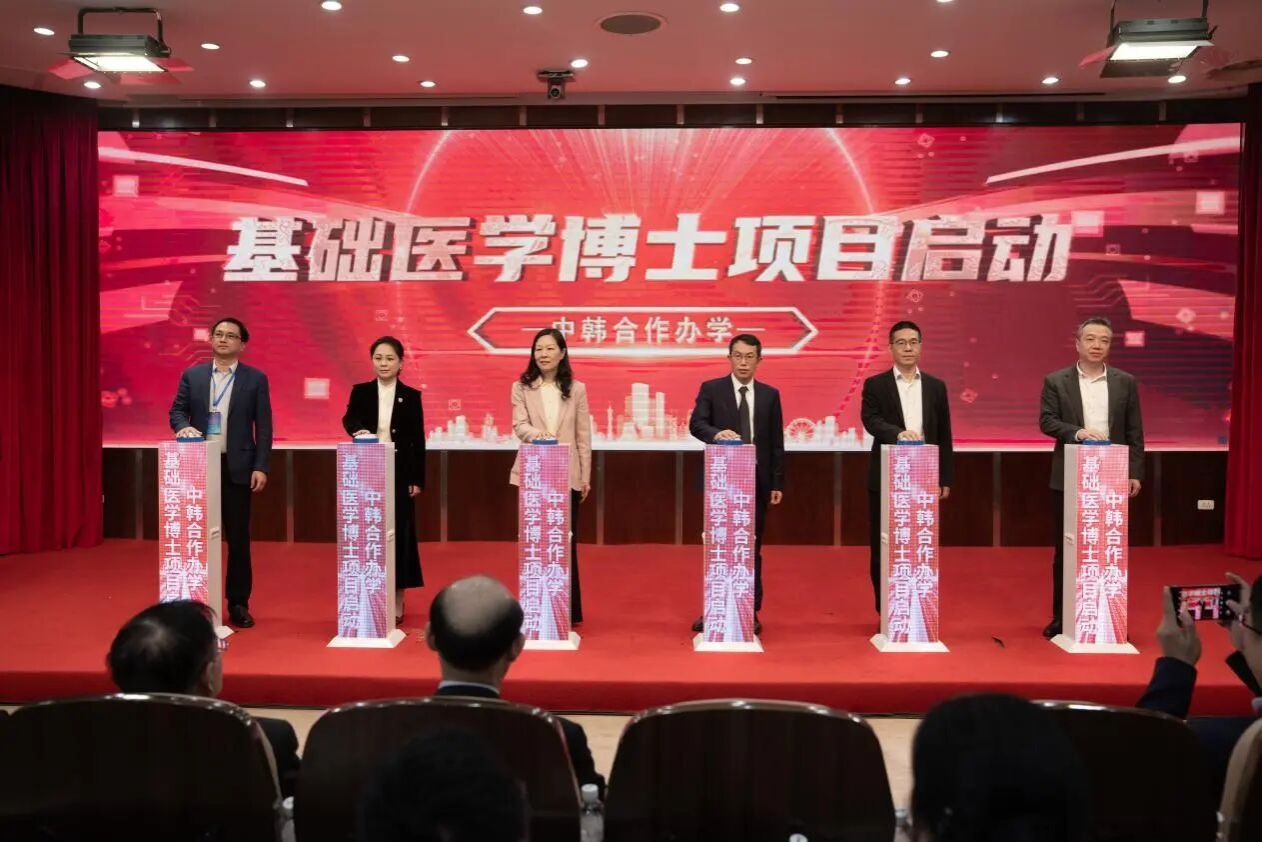与韩国全南国立大学合作举办基础医学专业博士学位教育项目的启动仪式。