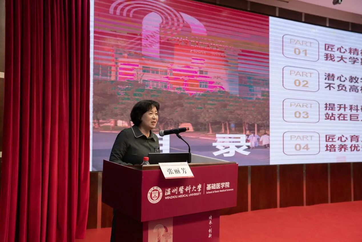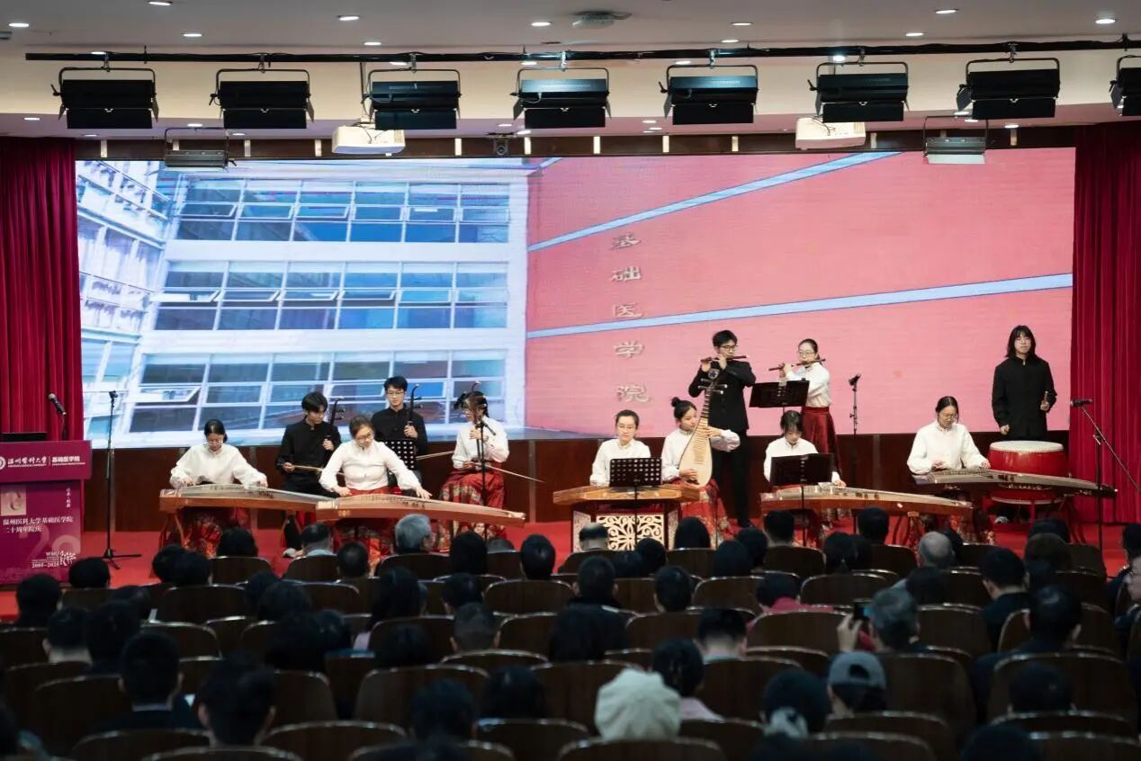 前身可追溯至1958年的医学基础教研室,现场师生代表深情朗诵了《薪火相传二十载,仁心筑梦启新程》,颂扬了自学校创办医学基础学科以来,六十七年弦歌不辍的传承精神。
