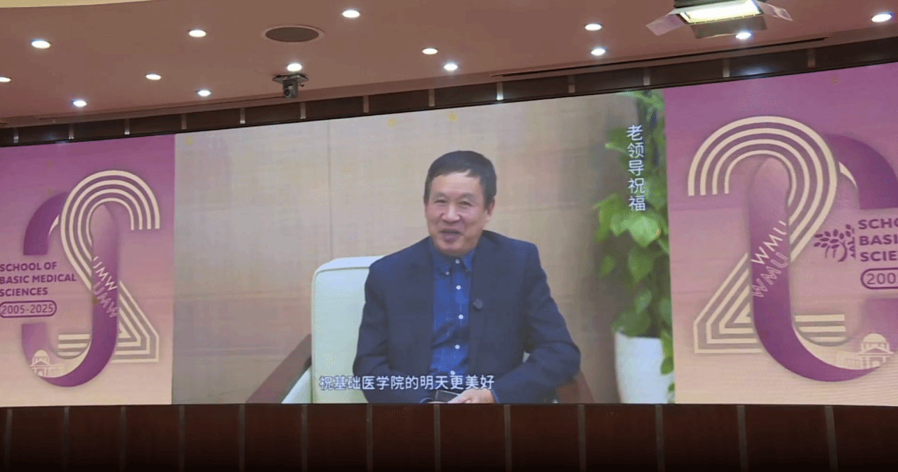 建院二十周年致以热烈祝贺。他高度评价了学院自2005年成立以来在师资建设、专业发展、人才培养及国际合作方面取得的显著成就,并对基础医学科排名稳步攀升表示赞赏。最后,他祝愿成人导航