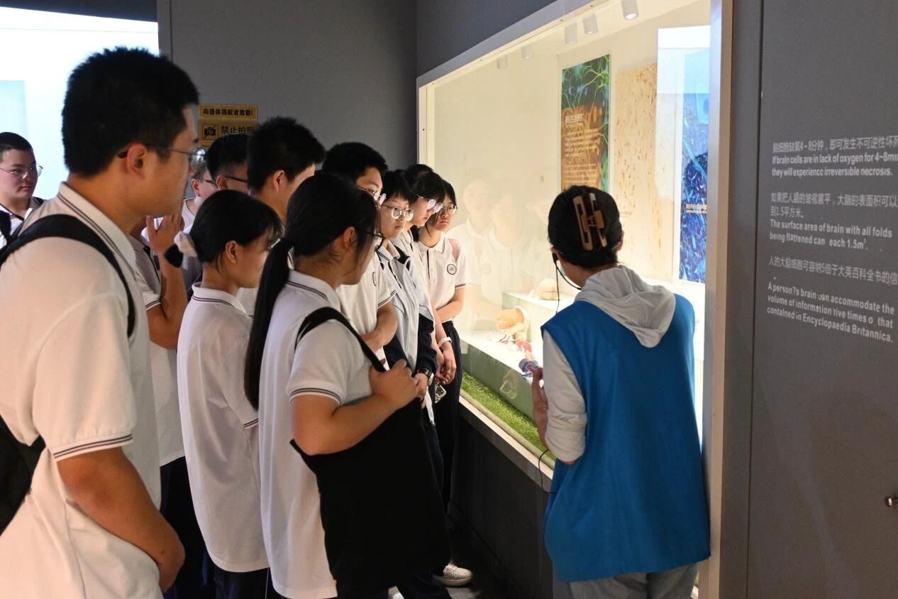 在人体科学馆内,同学在人体科普社讲解员引导下,近距离观察人体标本陈列。通过完整呈现的骨骼、神经等系统标本,学生们将课本中抽象的人体结构知识转化为直观认知。参观过程中,学生们不时驻足凝视,针对标本细节轻声提问,并用笔记本记录要点。当讲解员介绍标本在医学教学中的重要价值时,学生们纷纷表示,此次参观不仅加深了对人体结构的理解,更真切感受到医学学科的严谨性与使命感。