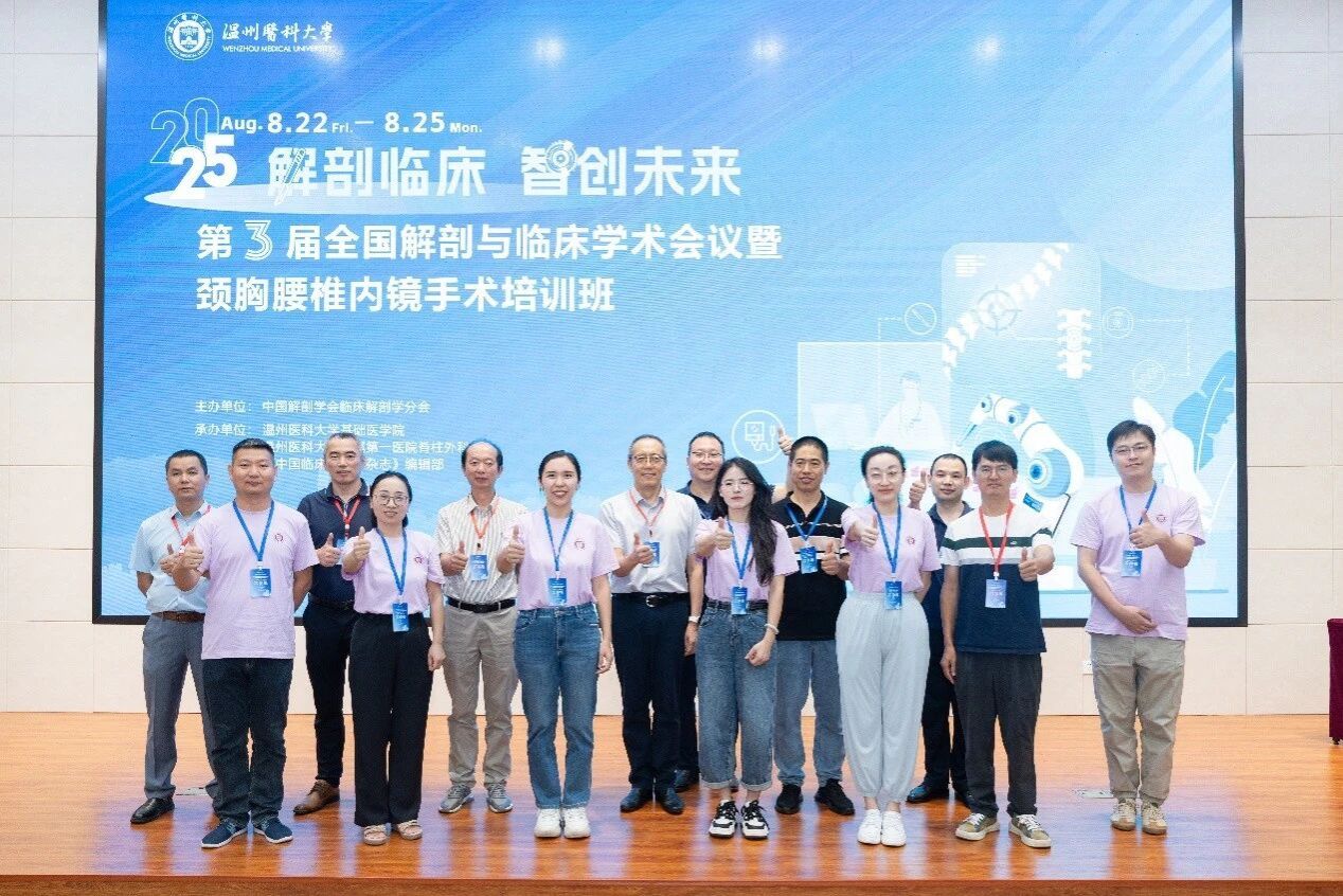 附属第一医院脊柱外科及《中国临床解剖杂志》编辑部共同承办的“第三届全国解剖与临床学术会议暨颈胸腰椎内镜手术培训班” 在浙江省温州市隆重举行。本次会议以“解剖临床 智创未来”为主题,深度探索临床解剖学服务医疗技术发展的应用场景,聚焦数字解剖学、解剖结构的原创性发现、脊柱外科微创手术、关节及创伤外科领域新技术及新认识等前沿领域,吸引了来自全国30余所高校、医院的近百名专家学者、临床医师、研究生及本科生参与,共同推动解剖学与临床技术的深度融合。