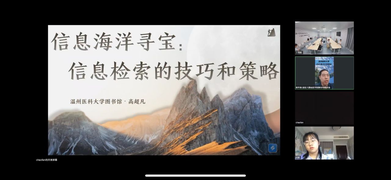 活动依托腾讯会议开展线上讲座:眼视光学院苏建忠教授以《AI 时代生物医药科学发展思考》为题,结合临床案例解析AI在药物研发、精准医疗的应用,搭建医学前沿与基础研究的认知桥梁;图书馆高超凡老师分享 “信息海洋寻宝”,讲解学术检索技巧与文献筛选逻辑,为后续实践夯实基础。