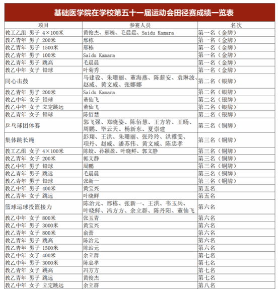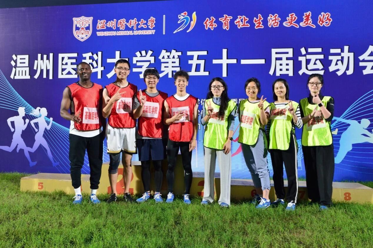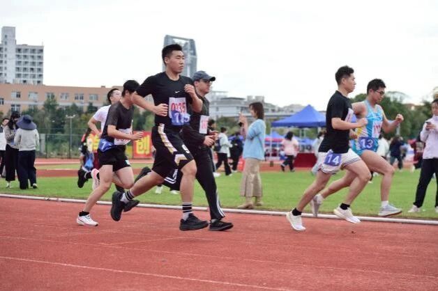 在教工乙组4x100米接力赛中,由黄俊杰、邢栋、毛晨晨、SAIDU KAMARA组成的男子代表队以风驰电掣的速度强势夺冠,创造了历史性的辉煌战绩!而由陈姣、孙颖盈、叶晓鲜和郭文静组成的女子代表队,凭借无间的默契与奋勇拼搏,将铜牌收入囊中!