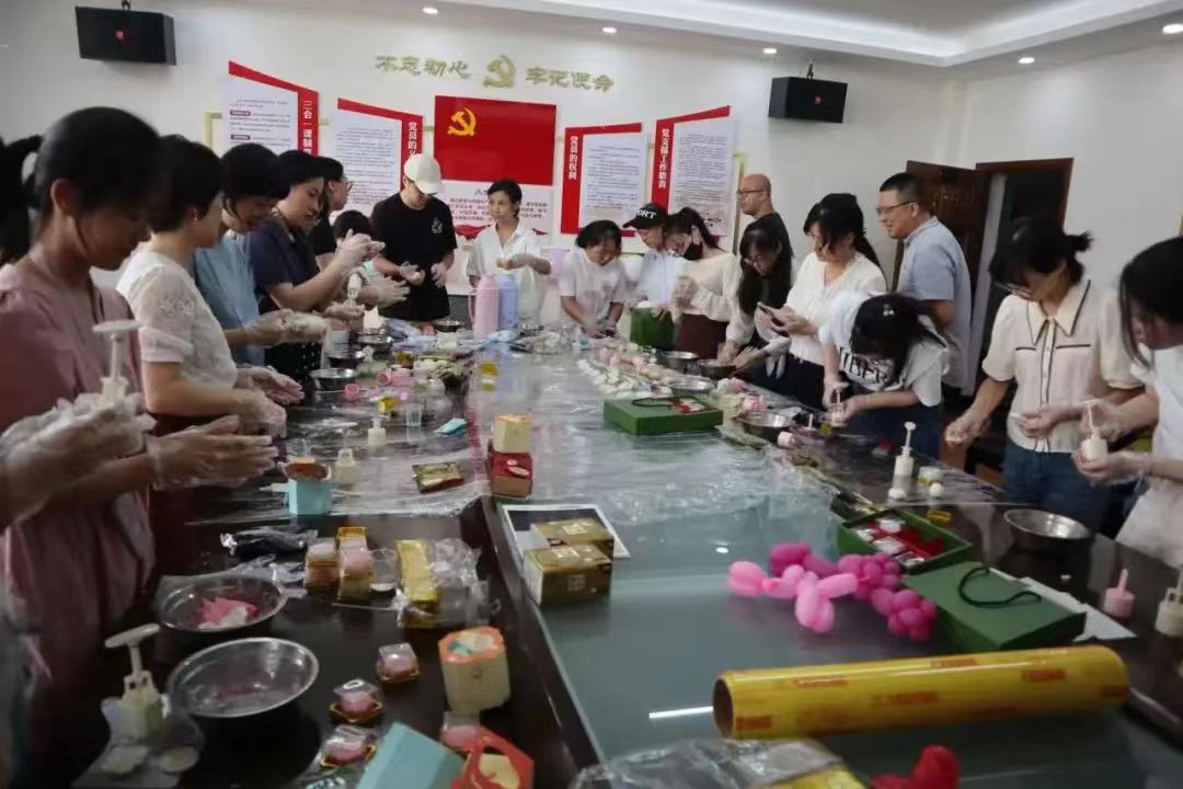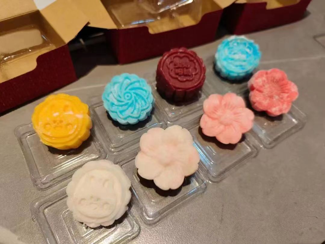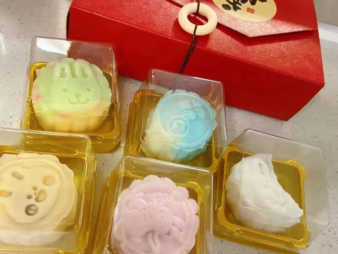 晶莹软糯的饼皮、各色各味的流心,经过揉面包馅,再合拢压进精巧的模具,不一会儿,一个个小巧精致的月饼就“应运而生”了。尝到亲手制作的月饼,大家内心感到满满的自足感和成就感。