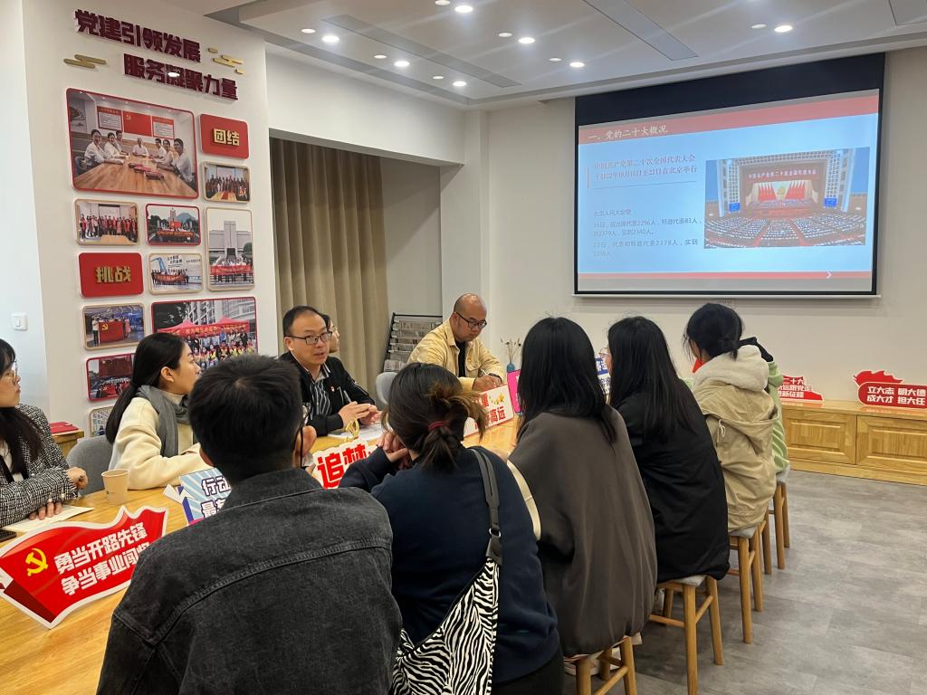 黄宝兴副书记在交流中,主要从对党的二十大概况介绍、精神把握以及学习要求三大方面入手,结合党的二十大报告,以“原文原话+实例实际”的讲授方式,从新时代十年伟大变革的里程碑意义、马克思主义中国化时代化的精神实质、中国式现代化的丰富内涵和本质要求、全面建设社会主义现代化国家的目标任务以及习近平总书记对新时代青年的殷切希望等方面,作了系统梳理和深入阐释。