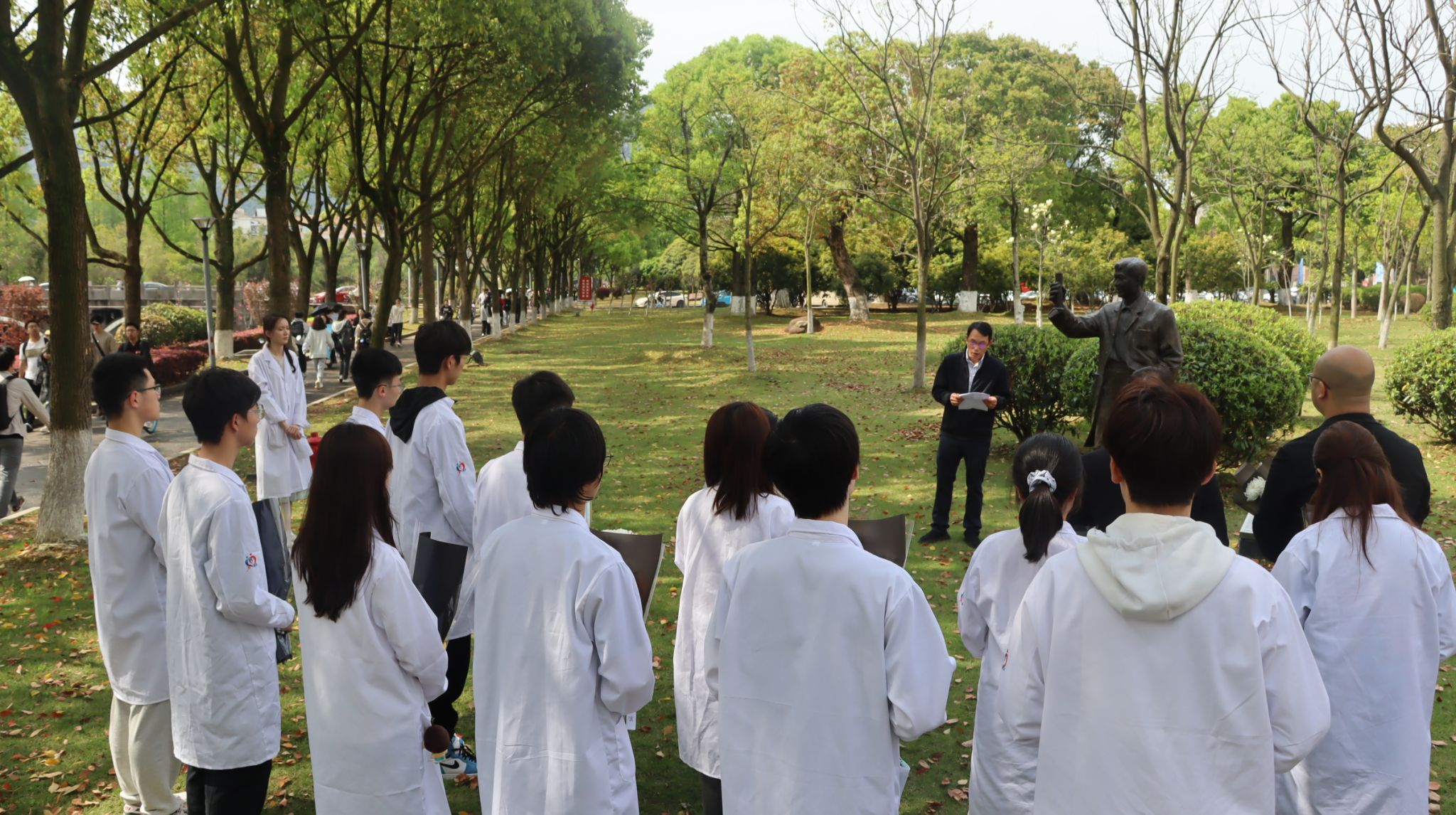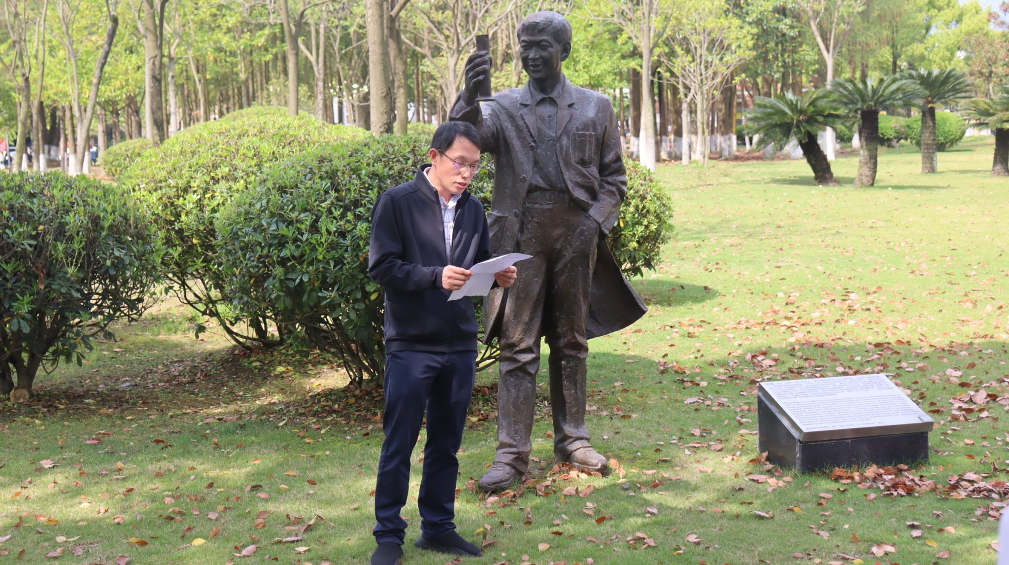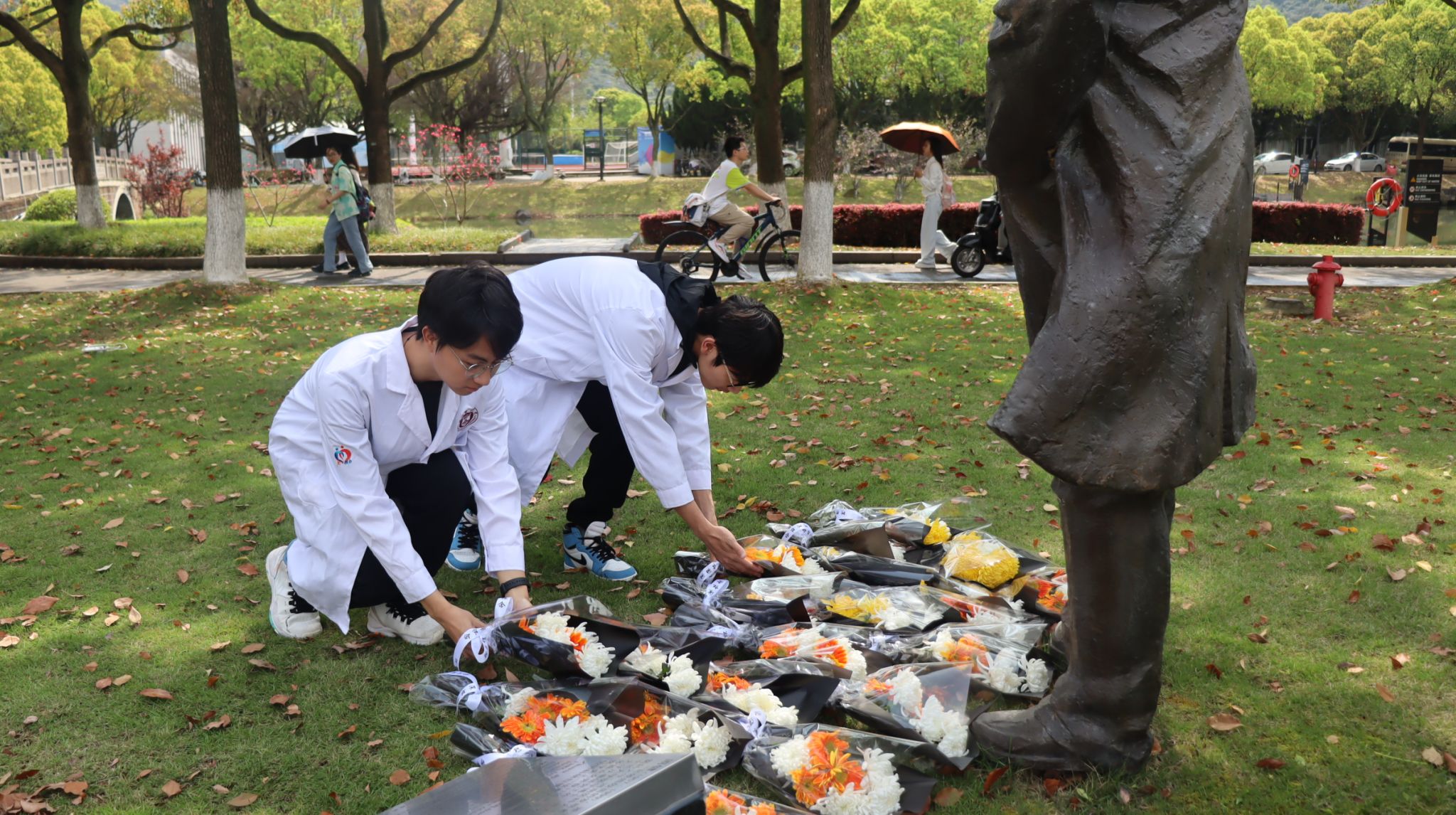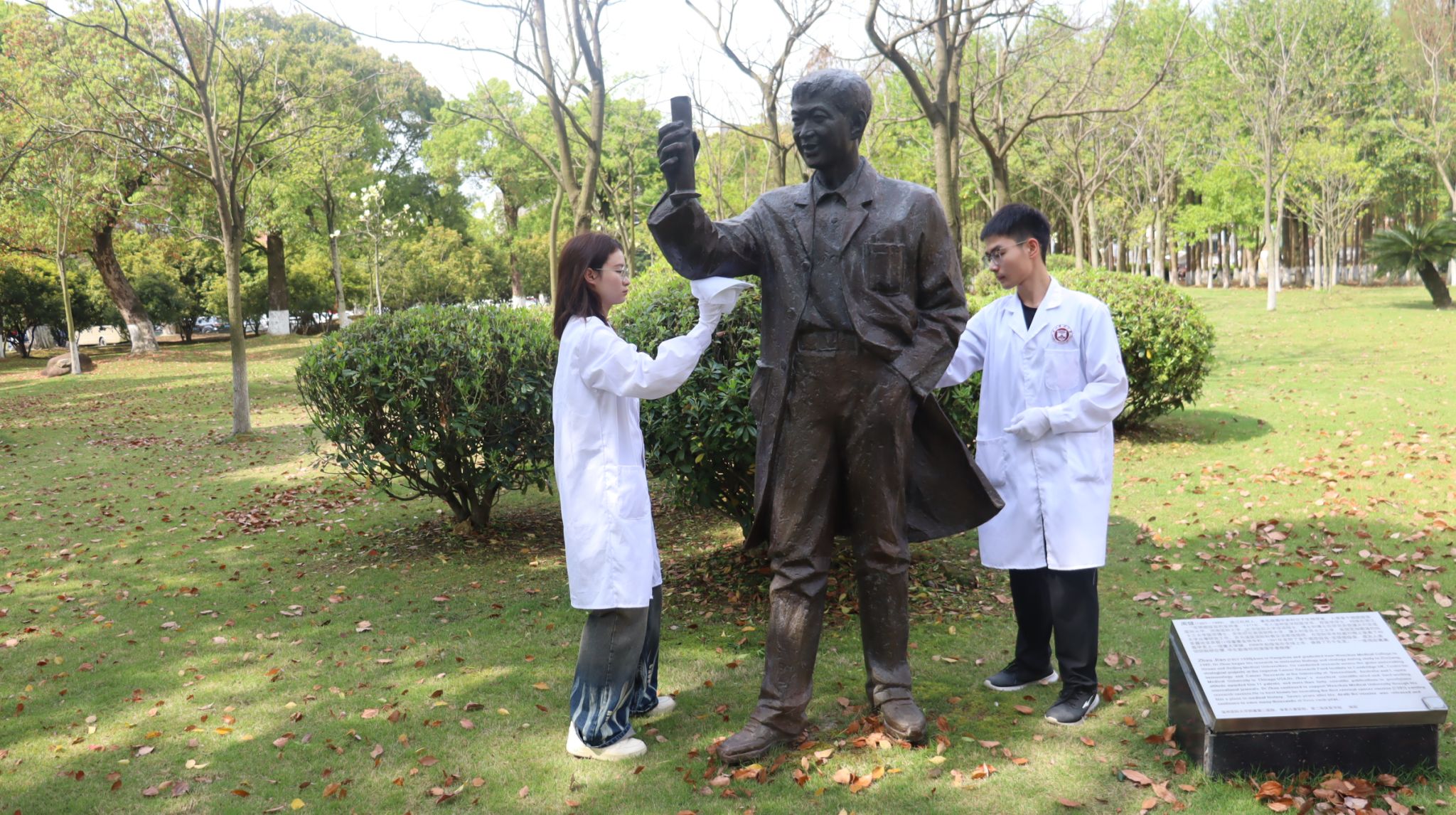 师生在茶山校区周健博士铜像前举行“敬仰·追思”活动。成人导航