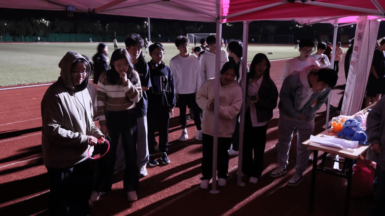 随后经过奔跑的同学们回到主席台下,在工作人员的引导下参与知识问答环节,通过深入了解糖尿病相关知识,回答问题并领取小奖品,并在此之后依据运动软件所记录的夜跑里程数,以400米一次机会来参与套圈小游戏。