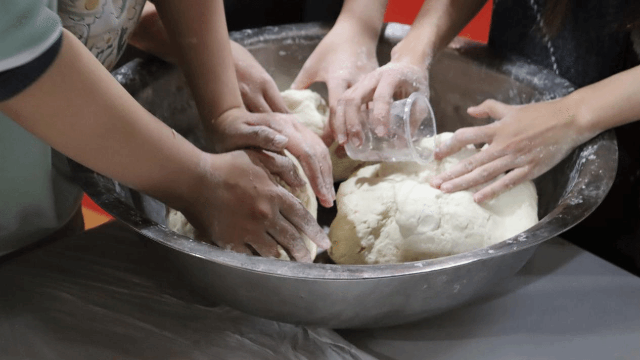 活动伊始,师生们齐聚在二食堂三楼,共同享受制作饺子的乐趣。一侧,师生们开始了和面的环节。在锅碗瓢盆的碰撞声中,大家围着桌子,用手将面粉和水按比例混合,熟练地揉成光滑的面团。这个过程中,师生们不仅交流彼此的经验,还分享各自家乡的饺子制作秘笈,气氛轻松而愉悦。另一侧,师生们齐心协力,热火朝天地进行包饺子。大家动手制作,交流技巧,现场不仅有经验丰富的老师传授传统包法,还有学生们展示各自独特的创意包法。