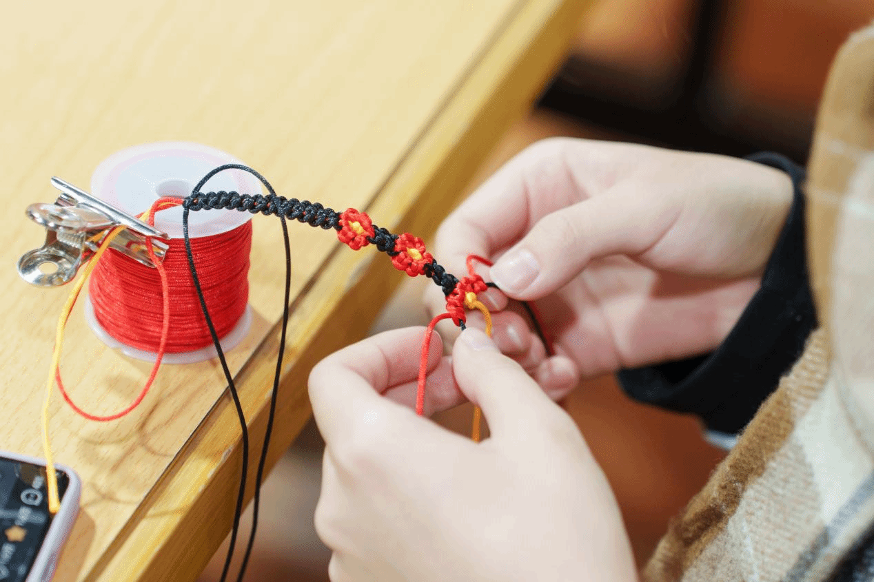 师生们使用五彩线材编织出各式各样的手环,每个人都可以根据自己的喜好,选择不同的颜色和图案,亲手编织一个独特的手环。制作完成后,大家将自己编织的手环互相交换,增进了彼此之间的友谊。