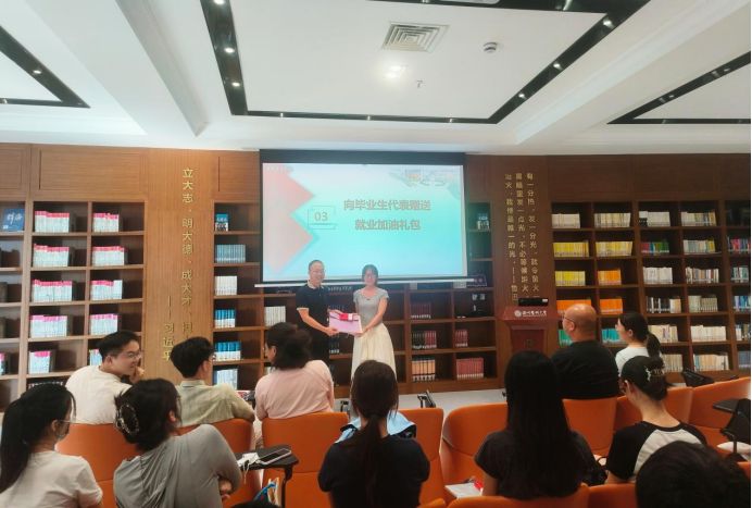 会上,黄宝兴副书记为2026届毕业生代表赠送精心准备的“就业加油包”,传递学院对毕业生的深切关怀与美好期许,鼓励毕业生全力冲刺求职。