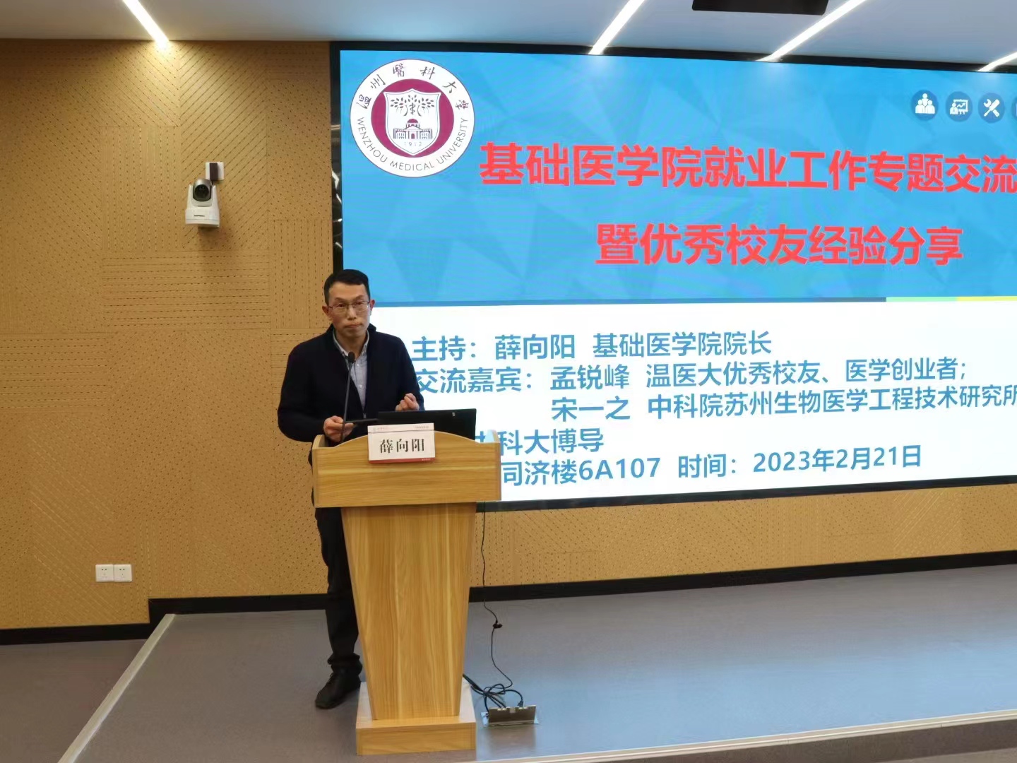 在同济楼6A107举行“就业工作专题交流会暨优秀校友经验分享会”,我校杰出校友代表、医学创业者孟瑞锋与中科大博导宋一之研究员在创业创新和科研学术方面各自进行了经验分享与交流。成人导航