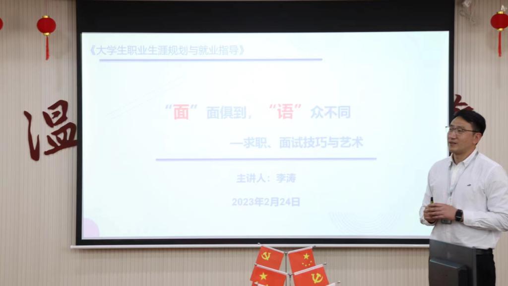 开展就业工作专题交流会暨求职技巧培训会,本次交流嘉宾为我校《大学生职业生涯规划与就业指导》课程主讲李涛老师。学院党委副书记黄宝兴出席本次活动,全体毕业班研究生和本科生代表参加交流活动。