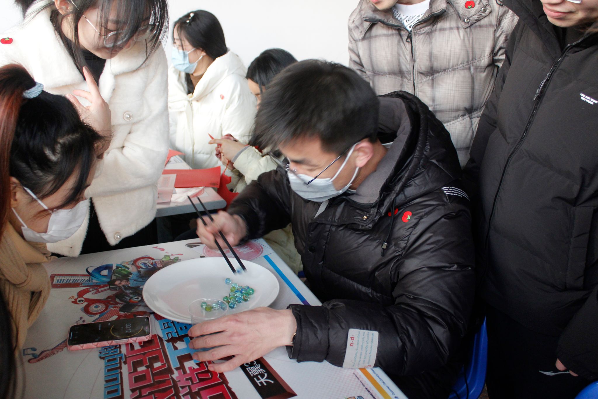 在校二食堂二楼成功举办了“冬日暖阳,温暖你我”师生共迎冬至活动。此次活动由竞速比赛、创意比拼、传统剪纸、夹珠子四个部分组成,近30名师生参与。
