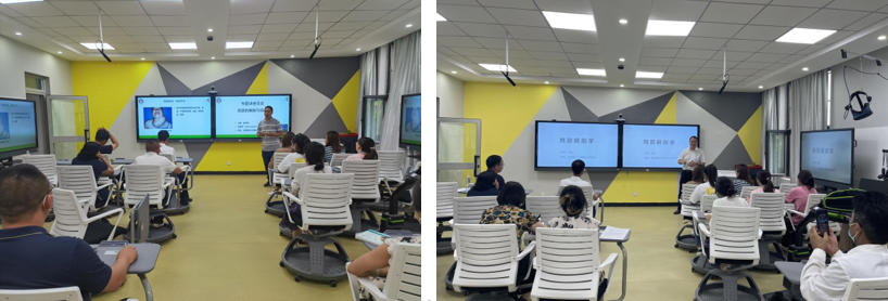 形态实验教学中心执行主任崔怀瑞教授和解剖学教研室副主任周鹏老师分别作了《颈部的解剖与临床》和《腹部的解剖与临床》等专题讲座。