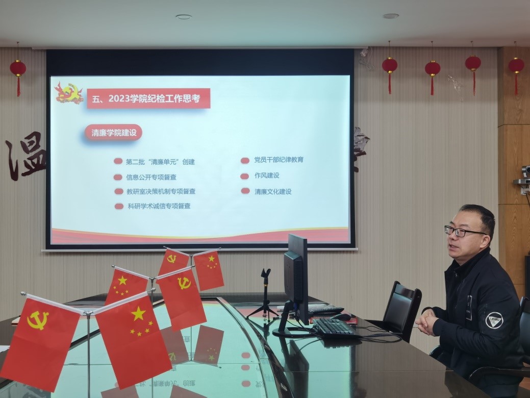 本次会议,学院纪委委员和各支部纪检委员进行了履职交流发言,对2023年纪委工作重点提出建议,并围绕党支部标准化规范化建设、教研室决策制度建设与执行、师德师风建设、加强纪检干部队伍建设以及纪检委员监督效用发挥等方面展开充分讨论。