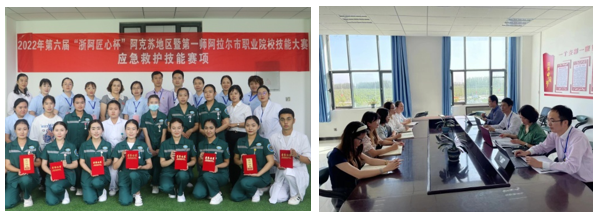 师徒帮带,只为授人以渔。为了受援学校的长远发展,徐象党坚信最好的援疆就是留下一支带不走的骨干教师队伍。他通过“援疆教师带徒弟+后方进修提升”传帮带模式,通过线上线下多渠道提升教师教学水平,有效推动受援学校医学教育教学高质量发展。他结对的两位传帮带青年教师顺利晋升职称。援疆期间,徐象党指导本地教师立项厅局级以上课题2项、校级课题7项和校级教学成果奖1项,受援学校师生累计获地区级以上各类竞赛奖项65项,其中受指导师生在第五、六届“浙阿匠心杯”阿克苏地区暨兵团第一师职业院校技能大赛获得团队和个人一等奖及阿克苏地区“青年教师校际联赛”一等奖,实现了历史性突破。此外,青年教师也获得了自治区课程思政教学名师、地区优秀科技工作者、地区高层次人才、教学能手等多项荣誉称号。