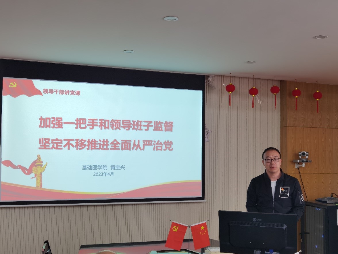 学院党委副书记、纪委书记黄宝兴以《加强对一把手和领导班子监督,坚定不移推进全面从严治党》为题讲党课,深入学习贯彻习近平总书记关于全面从严治党的重要论述,突出加强对“关键少数”特别是“一把手”和领导班子的监督。