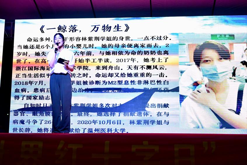 ,为医疗事业作出贡献,令台下观众无不动容。在返校的路上我们收到瑞安红十字会活动负责人发来微信“…好感动,台下好多人落泪了”。