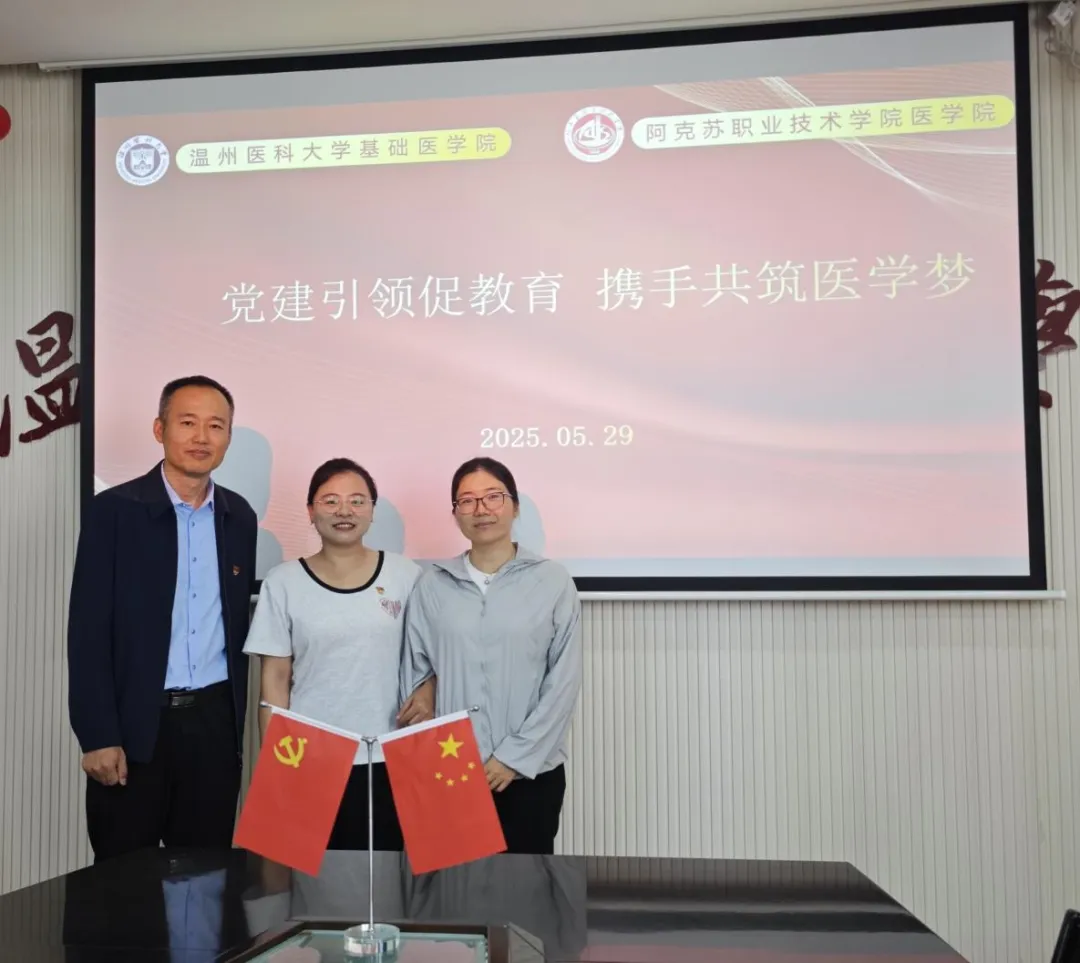援疆教师张伟和阿克苏职业技术学院跟岗访学教师万娟架起了两地医学教育工作者情感交融的桥梁,是教育理念与教学资源的互通共享,也是两院党支部创新共建模式、服务教学中心工作的生动实践。学院将持续深化“组团式”教育援疆模式,为助力新疆医疗卫生人才培养、促进民族团结进步贡献温医力量。