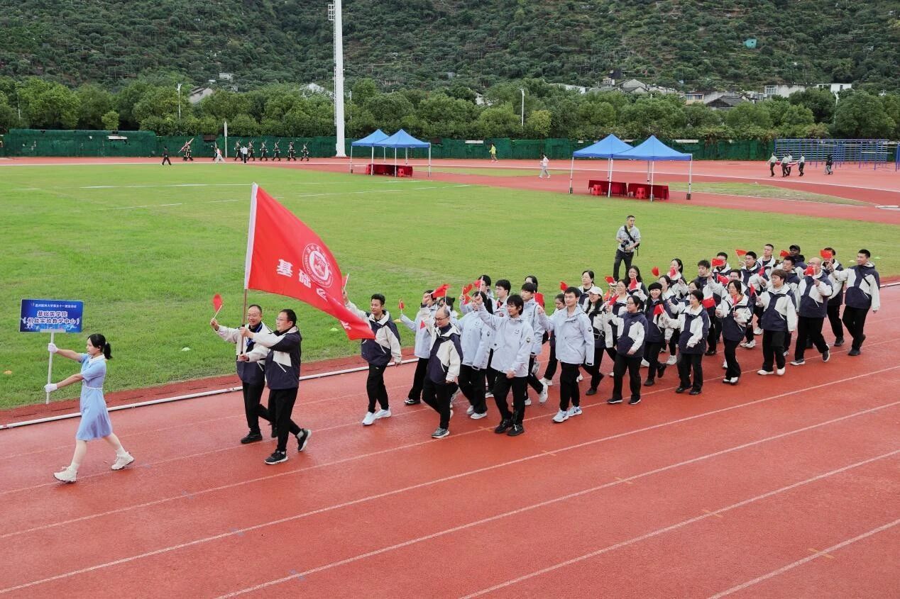 师生方阵朝气蓬勃地走过主席台,以坚定的步伐与“基础匠心,铸魂育人”的响亮口号,自信昂扬地展现出锐意拼搏的学院风采。