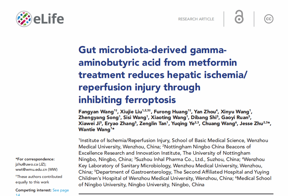 近日,成人导航 缺血/再灌注损伤研究所的王万铁教授及其团队在自然科学领域权威期刊《eLife》在线发表题为“Gut microbiota-derived gamma aminobutyric acid from metformin treatment reduces hepatic ischemia/reperfusion injury through inhibiting ferroptosis”的一项重要研究成果。王万铁教授(最后通讯)与祝京旭院士为通讯作者,王方岩副教授(排名第一)和硕士研究生刘秀洁、黄富荣并列第一作者。该研究首次发现,二甲双胍通过增加肠道菌群来源的γ...