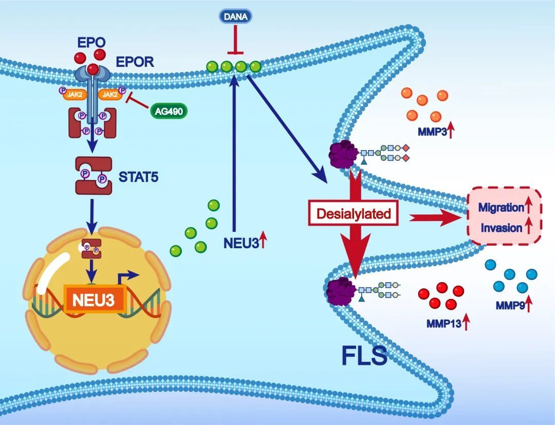 近日,成人导航 王建光/金胜威教授研究团队在风湿病领域权威期刊Annals of the Rheumatic Diseases(中科院一区, IF=27.973)发表了题为“EPO promotes the progression of rheumatoid arthritis by inducing desialylation via increasing the expression of neuraminidase 3”的研究成果,揭示EPO促进类风湿关节炎疾病进程的分子机制,为优化JAK抑制剂对RA的临床治疗策略提供理论依据。类风湿性关节炎 (rheumatoid arthritis,RA)是最常见的自身免疫性疾病,...